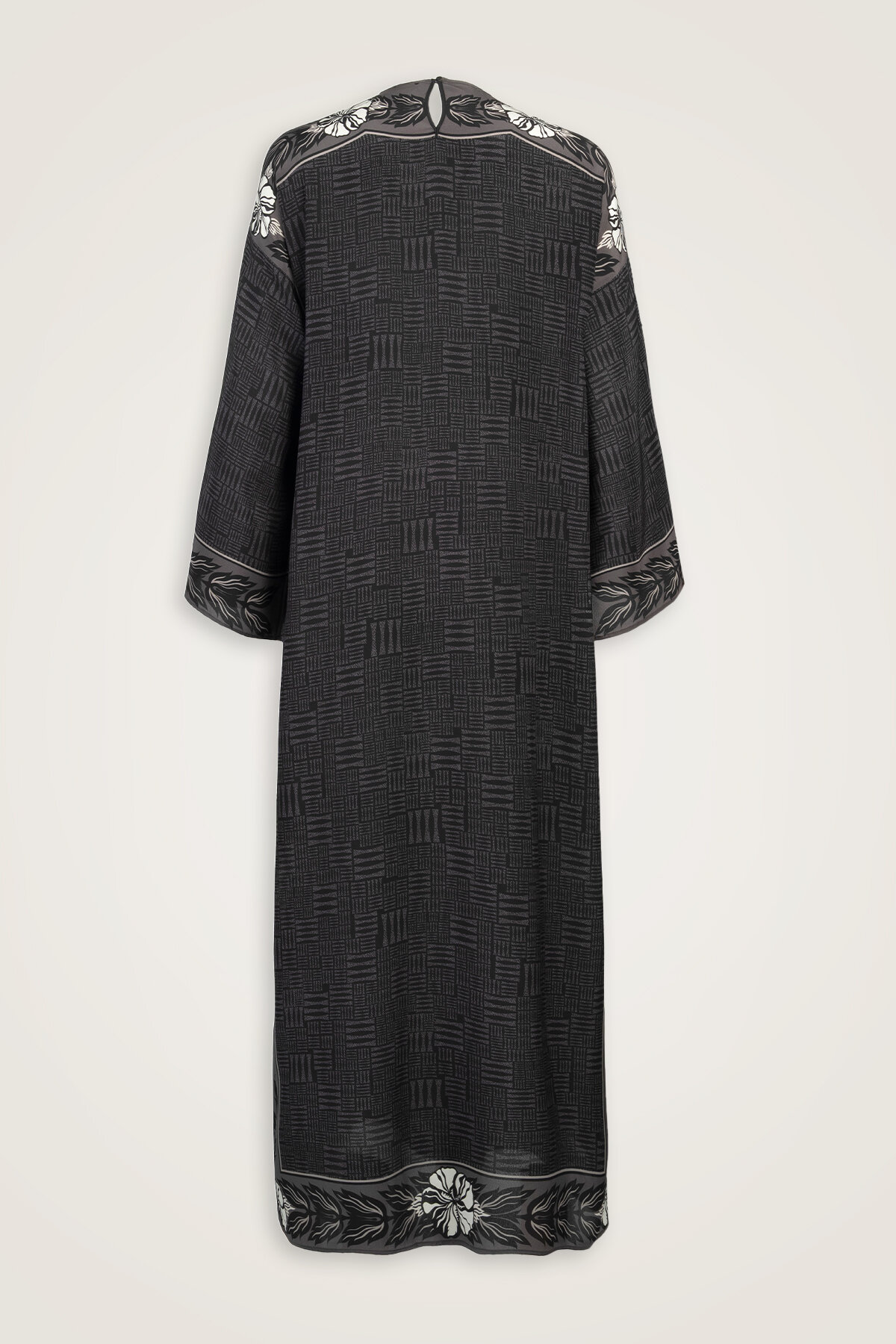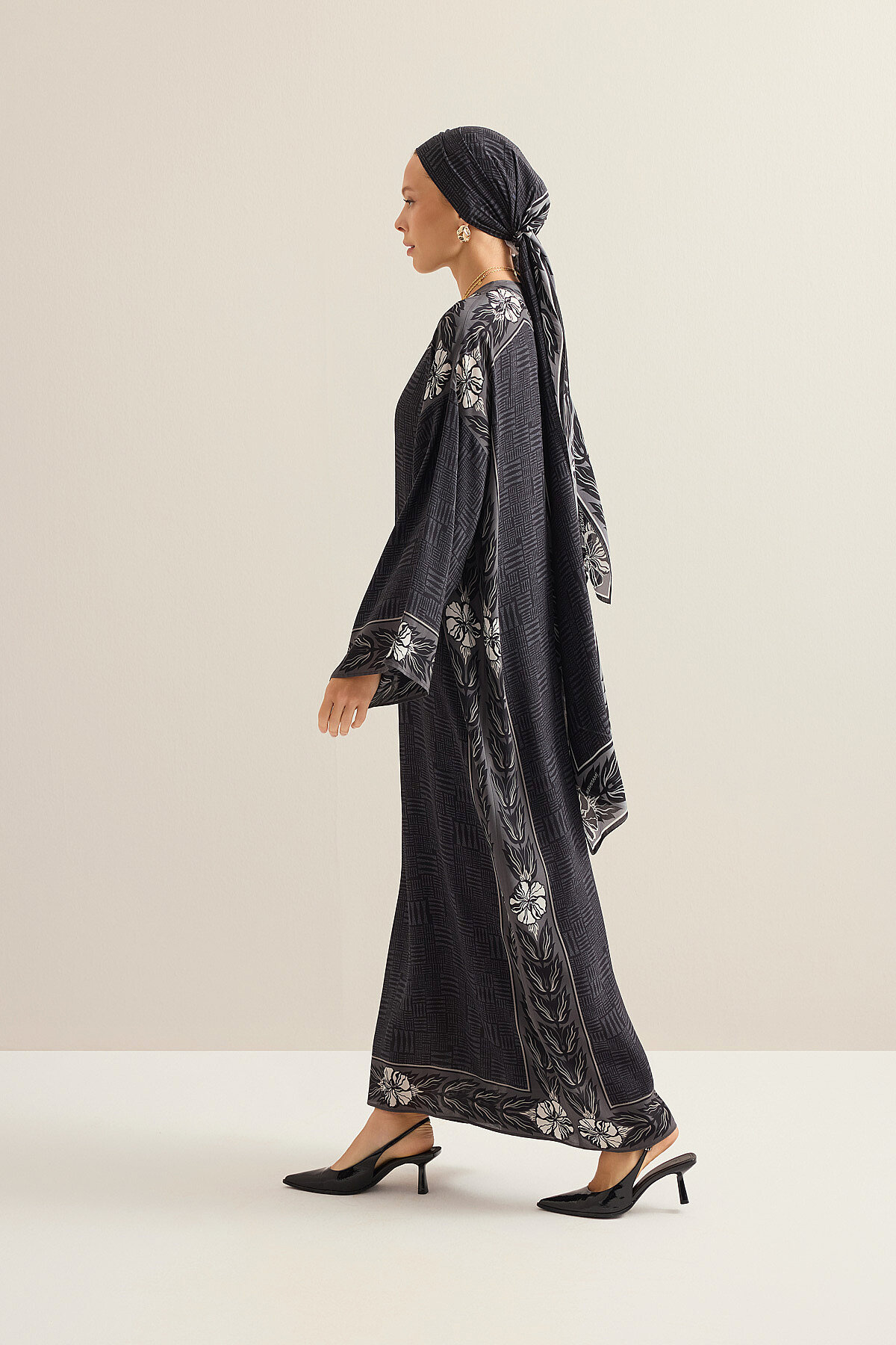 Taş Duvar deseninin özgün ve karakterli dokusunu zarif bir siluetle buluşturan bu krep ipek elbise, %100 ipek yapısıyla hafif, akıcı ve nefes alan bir kullanım sunar. Krep ipeğin doğal mat ışıltısı ve yumuşak dökümlü formu, elbiseye sofistike bir duruş kazandırırken gün boyu konfor sağlar. Hem günlük şıklıkta hem de özel anlarda zahmetsiz bir zarafet arayanlar için tasarlanan bu model, zamansız ve güçlü bir stil vurgusu taşır.