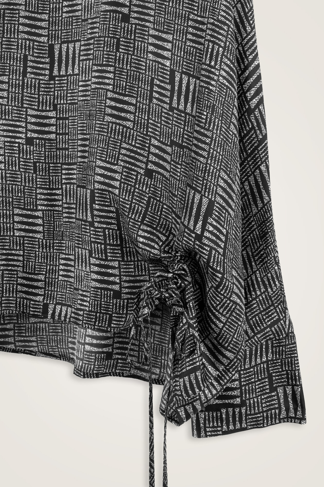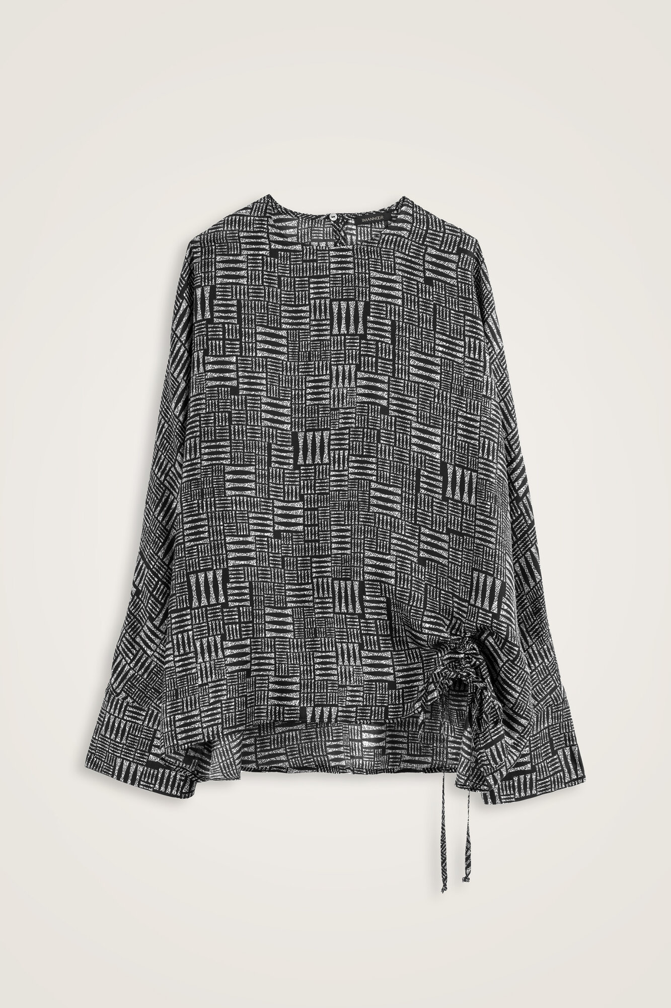 Kısa formu ve büzgülü detaylarıyla modern bir siluet sunan bu bluz, Taş Duvar temasının sade ve güçlü estetiğini yansıtır. Pantolon, etek ve ceketlerle kolayca kombinlenerek hem günlük şıklıkta hem de özel davetlerde tercih edilebilir.