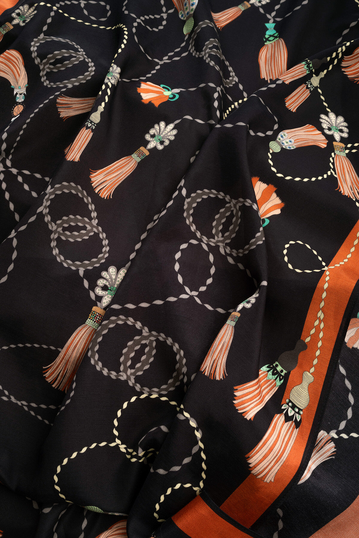 Kenarlarındaki püskül detayları, sade şıklığa hareket ve karakter katar. Günlük kombinlerden özel davetlere kadar geniş bir kullanım alanına sahiptir.