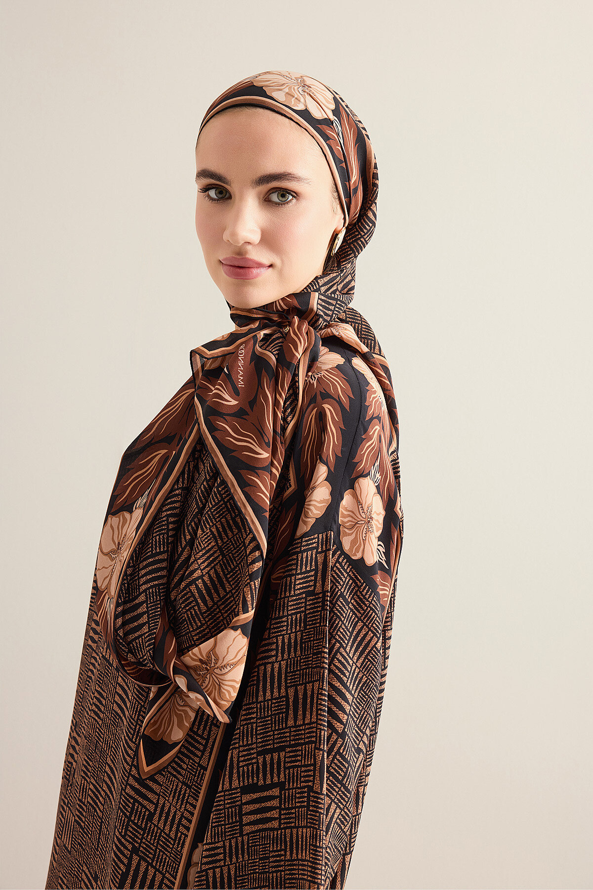 İmannoor’un sanatsal ve zarif tasarım anlayışını yansıtan Çiçek Bordürlü Dokulu Taş Duvar Krep İpek Şal, %100 ipek krep dokusunun hafif ve yumuşak yapısıyla akışkan ve konforlu bir kullanım sunar; 70×210 cm ölçüsü sayesinde farklı bağlama ve stil alternatiflerine uyum sağlar, taş duvar dokusundan ilham alan zemin tasarımı çiçek bordür detaylarıyla buluşarak stile hem doğal hem de sofistike bir karakter kazandırır, ipeğin doğal parlaklığı ve nefes alabilen yapısı gün boyu zarafet ve rahatlığı bir arada sunan zamansız ve güçlü bir aksesuar olarak öne çıkar.