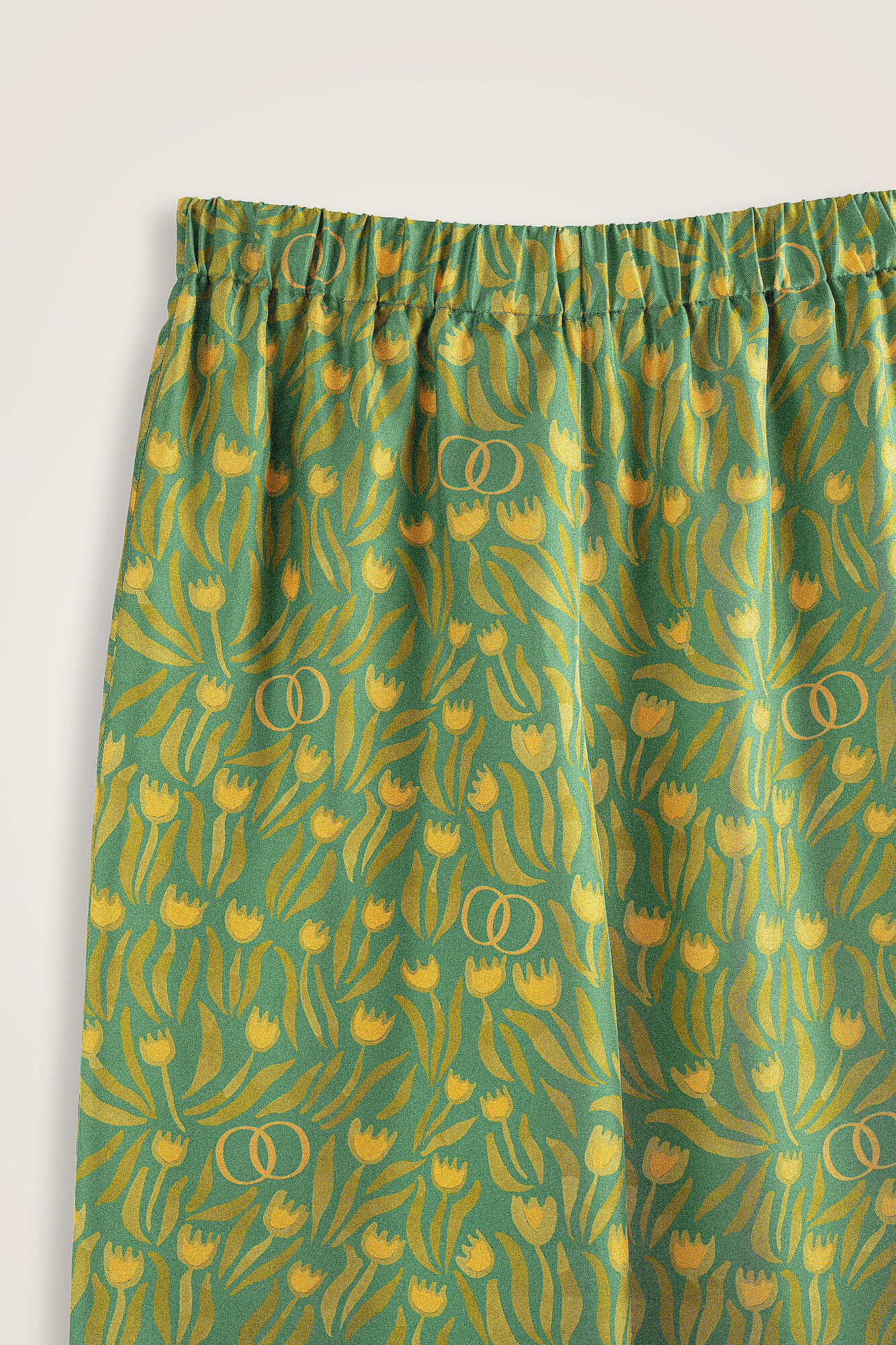 Lale deseninden ilham alan özel tasarımıyla zarafeti öne çıkaran Lale Tarlası Krep İpek Pantolon, akıcı ve hafif ipek dokusuyla gün boyu konfor sunar. Şık ve rahat kesimi sayesinde hem günlük kombinlerde hem de özel anlarda stilinize zarif bir dokunuş katar. 🌷✨