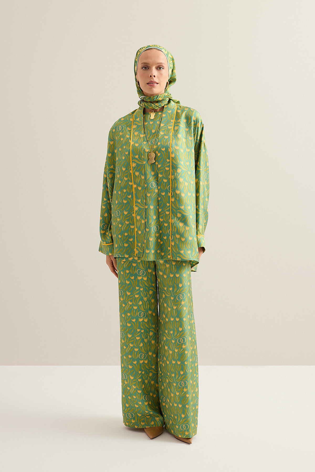 Lale Tarlası deseninin zarif ve romantik atmosferini taşıyan bu ipek kısa kimono, pürüzsüz dokusu ve akıcı yapısıyla hafif ve konforlu bir kullanım sunar. İpeğin doğal parlaklığı tasarıma sofistike bir ışıltı kazandırırken, kısa ve dökümlü formu modern ve zarif bir siluet oluşturur. Elbise, pantolon ve basic parçalarla kolayca uyum sağlayan bu model, günlük şıklığı tamamlayan zamansız ve rafine bir stil ifadesidir.