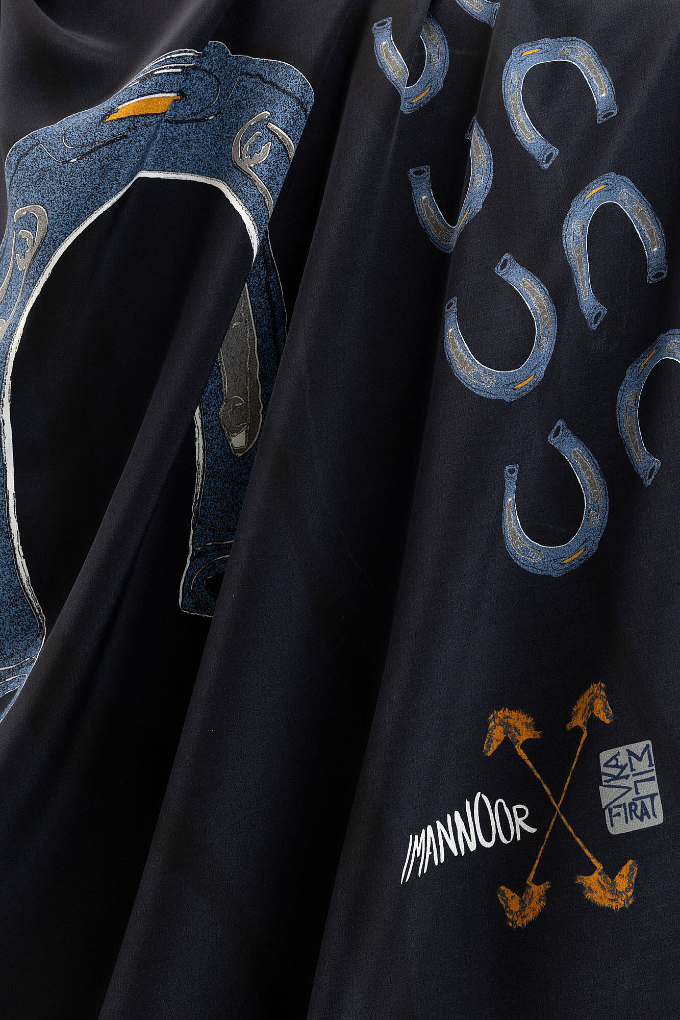 Hayat Turquoise Crepe Silk Kaftan Shawl
