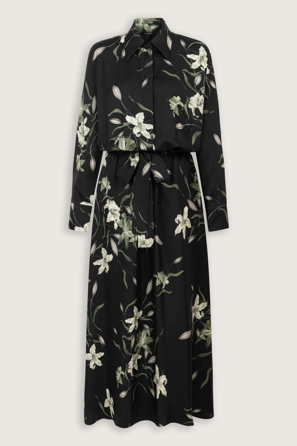 Zambak Bel Detaylı İpek Elbise, hem özel günlerinizde hem de günlük şıklığınızda stilinizi zamansız bir zarafetle taçlandırır. 🌿✨