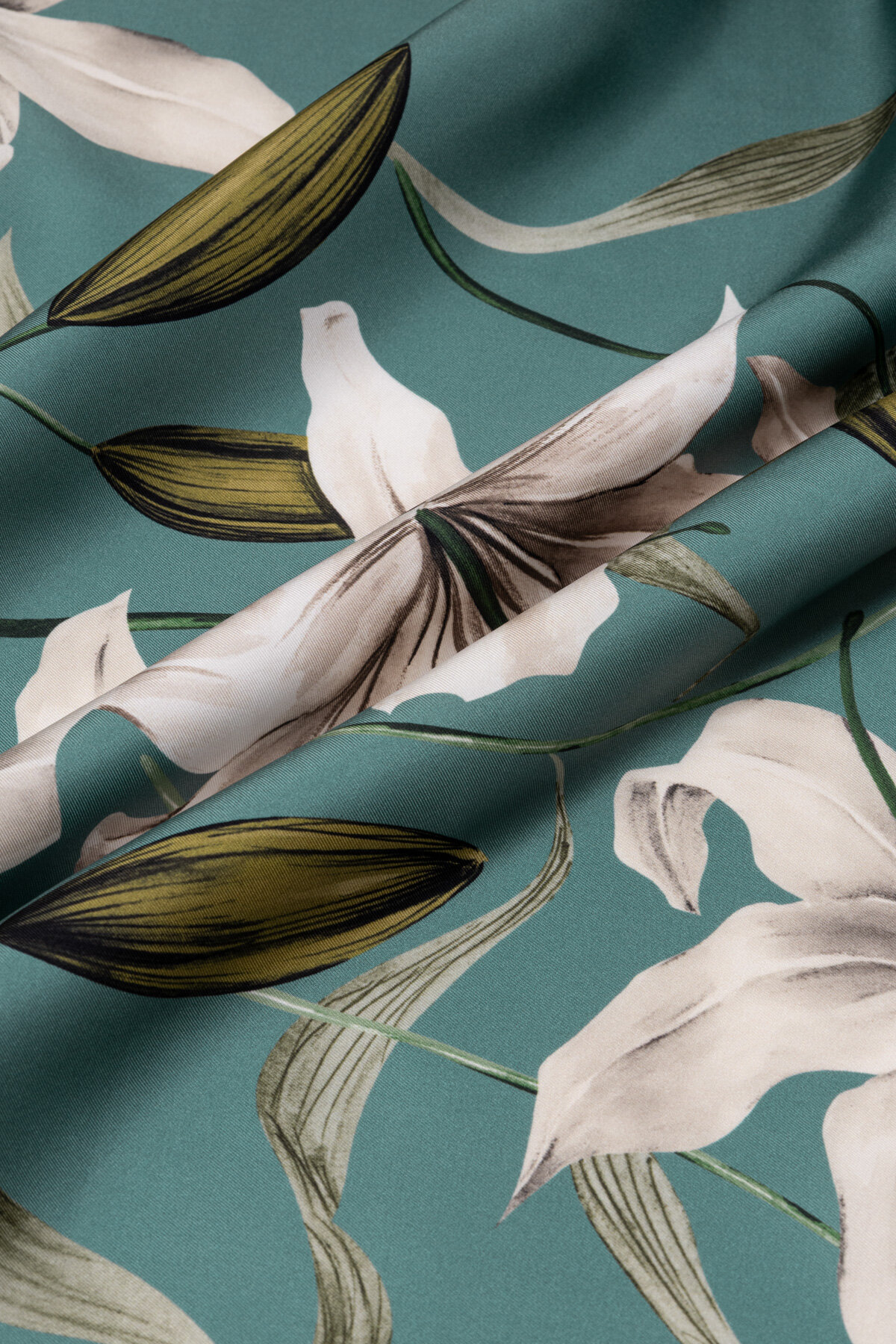 Zambak Tivil İpek Eşarp, güçlü ipek dokusunu sade şıklıkla buluşturarak gardırobunuzun öne çıkan parçalarından biri olur. ✨