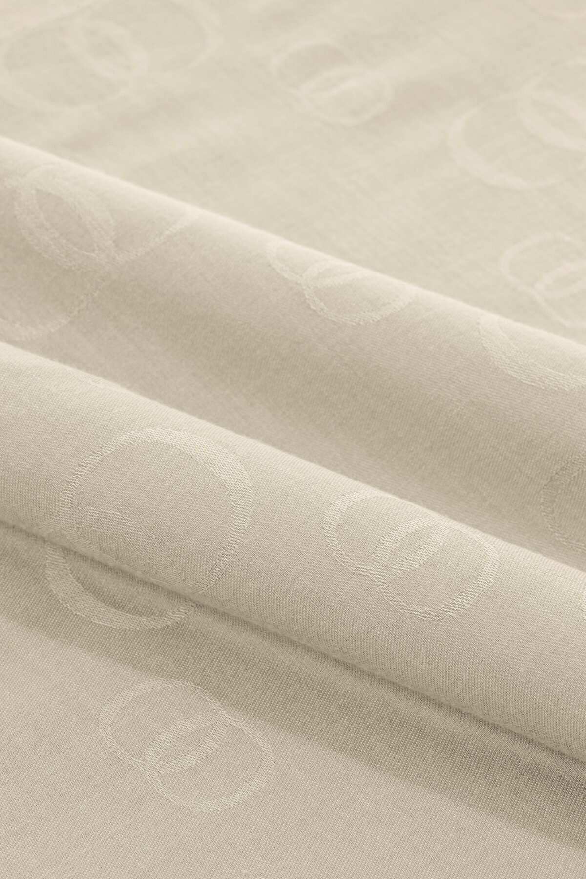Bu şalın en dikkat çekici özelliği ise, firmanın simgesi haline gelen iç içe geçen iki "O" harfinin kullanıldığı özgün desenidir. Bu harfler, şal üzerinde büyük ve küçük boyutlarda, hem yatay hem de dikey olarak sıralanarak modern ve sofistike bir görünüm yaratmaktadır.