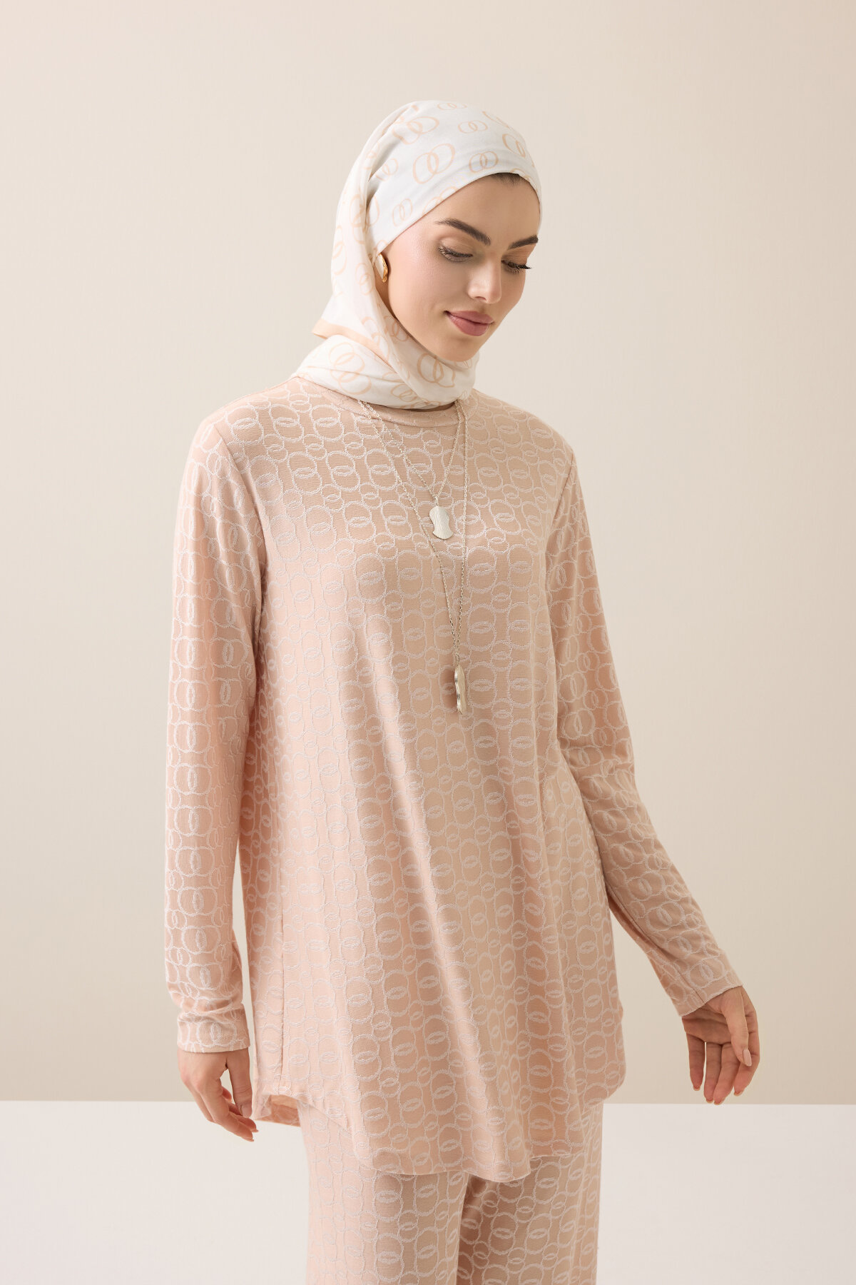 İmannoor’un özgün tasarım çizgisini yansıtan Zincir Jakar Süprem Bluz, hafif dokusu ve esnek yapısıyla hem konforu hem de zarafeti bir arada sunuyor. Zincir jakar deseninin modern görünümü, bluza sofistike bir karakter kazandırırken, süprem dokuması gün boyu rahatlık sağlar.